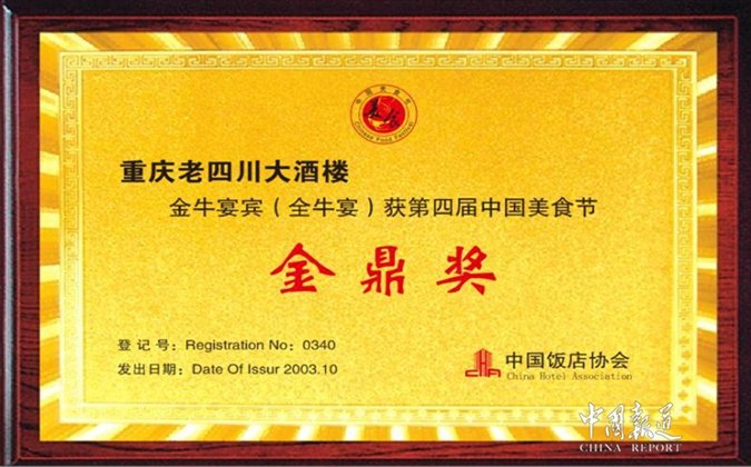 2003年:全牛宴獲第四屆中國美食節(jié)金鼎獎