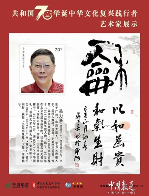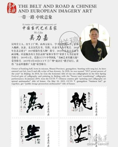 央視新聞快訊:日前,央視獲悉,5月28號非常吉祥如意鴻運當頭大喜日子里迎來中國著名書畫名家吳力嘉大師雙喜臨門的好日子,國際郵冊與中國郵票管理局發(fā)布吳力嘉大師作品更加讓廣大朋友深入了解吳力嘉大師在書畫方面的知明度。吳力嘉(吳風子),漢風堂主人,出生于廣州,山西太原人。學書從唐楷入手,后涉入魏碑,漢隸,尤喜漢代帛書,竹簡,以隸書入行草見長。2018年在北京授于″2017驕傲年度人物″稱號。2018年在北京首屆書畫春晚,以懸腕真功夫書法表演"家和萬事興"榮獲十大書法家榮譽稱號。2019年1月,榮獲CCTⅤ中華國禮“書畫藝術(shù)傳播大使"榮譽稱號。