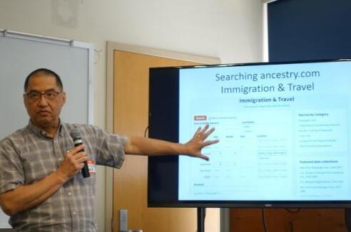 溫佑華講述家族歷史搜尋技巧。(圖片來源:美國《世界日報》記者金春香/攝影)