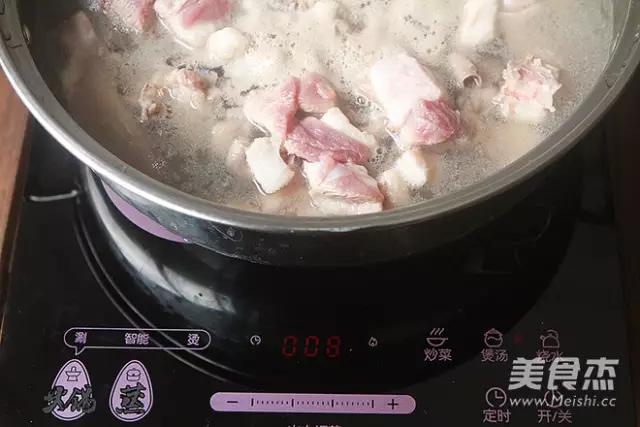 2.鴨肉放進裝清水的鍋里,按蘇泊爾的火鍋電磁爐的煲湯鍵,煮開1分鐘飛去血水,水里面放2片姜去去腥,飛水后撈起沖洗干凈備用。