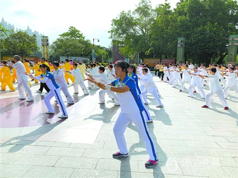 經(jīng)過一個(gè)月的培訓(xùn),兩百多名學(xué)員于昨天在亞藝公園進(jìn)行結(jié)業(yè)匯演。家住惠景公園附近的林先生練習(xí)太極多年,這次有機(jī)會(huì)學(xué)習(xí)吳氏太極拳,第一時(shí)間在社區(qū)居委會(huì)報(bào)名。林先生說,吳氏太極拳的功架緊湊、安靜自然、招式嚴(yán)密、細(xì)膩綿柔,很適合大眾練習(xí)。