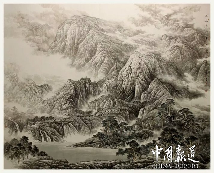 “李光燦的《大三峽》傳達出一種大氣、蒼茫、寧靜,并追求以形寫神,并從“神”中營造“韻”味。在作品中呈現(xiàn)出虛實相生的自然景象,使畫面有新的時代風貌和傳統(tǒng)的筆墨韻致……”