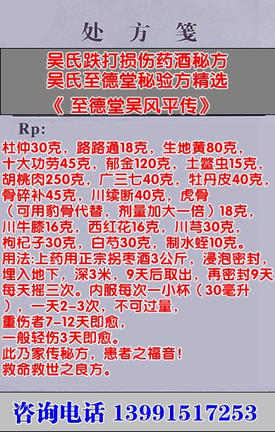 吳氏跌打損傷藥酒秘方吳氏至德堂秘驗方精選