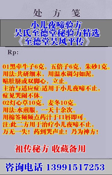 小兒夜啼驗方吳氏至德堂秘驗方精選