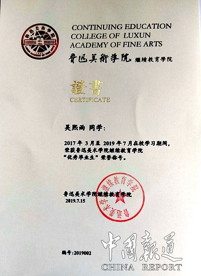 中國報(bào)道訊(特約撰稿吳熙雨)兩年半魯美緊張的學(xué)習(xí)時(shí)光轉(zhuǎn)眼就結(jié)束了,作為對我學(xué)習(xí)成果的肯定,院里授予了我優(yōu)秀畢業(yè)生稱號。這是對我學(xué)習(xí)成績的充分肯定,更是對我年過半百還在努力學(xué)習(xí)這種毅力的極大鼓舞。在校期間除了各科名列前矛外,在老師的指導(dǎo)下我的書法和美術(shù)作品分別入選了一次省展。經(jīng)過我的努力,考取了全日制書法專業(yè)的研究生。其實(shí),學(xué)習(xí)的努力是基于我對中國畫和書法的真心熱愛,從小酷愛畫畫,也受過徐甲英等名師指導(dǎo),到美術(shù)學(xué)院進(jìn)行系統(tǒng)的學(xué)習(xí)和深造成了我青少年時(shí)多年的夢想。