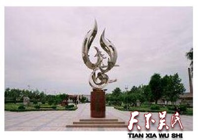 你看,自西到東的廣場中心地帶,有兩個最醒目的亮點。偏西的硬化區(qū)域,矗立著一尊銀光閃閃的雕塑,底座由印度紅色花崗巖砌成,上書四個金光閃爍的大字:鸞鳳和鳴。這是毛澤東的女兒李訥的手寫體,是她參觀周公廟時書寫的,在這里又派上了用場。高高的底座上面,挺立著一只不銹鋼制成的靈動騰飛的吉祥鳥——鳳凰,顯示著引頸高歌、一飛沖天的豪情壯志。而偏東的硬化區(qū)段,則在原石砌成的臺階狀基座上,豎立著一塊扁形巨石。正北的石面上,豎寫著“鳳鳴廣場”四個鮮紅大字,很是提神醒目;正南的石面中間,橫寫著著名的《回延安》的作者、原中宣部副部長、文化部部長賀敬之參觀周公廟時的題詞:“陜西千里大地,長安十代帝京。我偉大民族歷史見證在目,我英雄人民光輝形象如生。向四化進軍,當臨秦坑,閱兵馬之戰(zhàn)陣;朝高峰登攀,應上岐山,追九天之鳳鳴!”其中最后的結句“追九天之鳳鳴”,恰與這廣場的祥瑞氣氛吻合,也正能體現(xiàn)48萬西岐兒女發(fā)憤圖強、昂揚向上精神狀態(tài)!