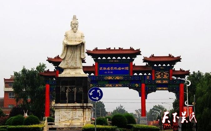 岐山縣城西關,周原廣場西北,靠近高大的周公漢白玉塑像之處,赫然聳立著一座雄偉壯觀的建筑物——明德亭。