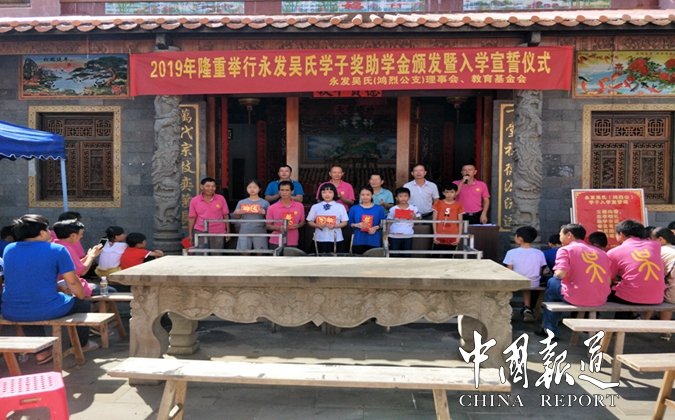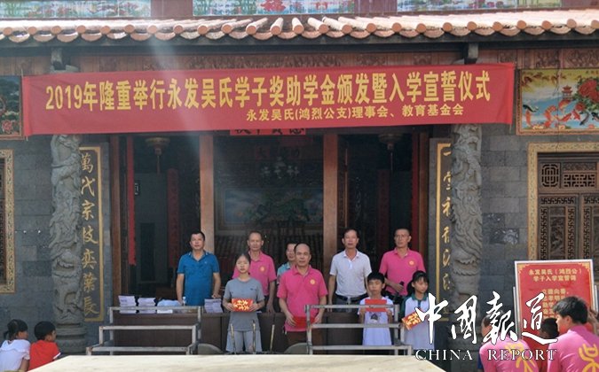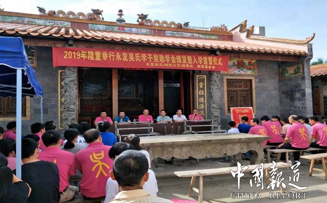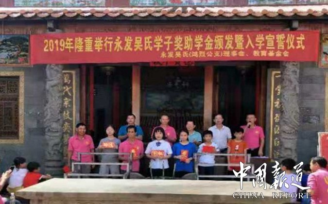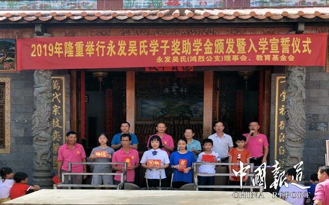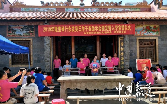 中國(guó)報(bào)道訊(特約撰稿吳乾山)為弘揚(yáng)中華傳統(tǒng)文化,重教興邦,促進(jìn)文明和諧,8月18日,海南省澄邁縣永發(fā)吳氏(鴻烈公支)理事會(huì),教育基金會(huì),在永發(fā)村吳氏宗祠舉行吳氏學(xué)子,獎(jiǎng)助學(xué)金頒發(fā)暨入學(xué)宣誓儀式。來自本支族學(xué)子20人得到獎(jiǎng)、助學(xué)金。其中高考大學(xué)錄取生4名,初升高,市縣重點(diǎn)中學(xué)4名,參加全國(guó)學(xué)科竟賽一、二等獎(jiǎng)各1名,小學(xué)年級(jí)春季期末考試總分前十名2名,資助中小學(xué)貧困生10名。