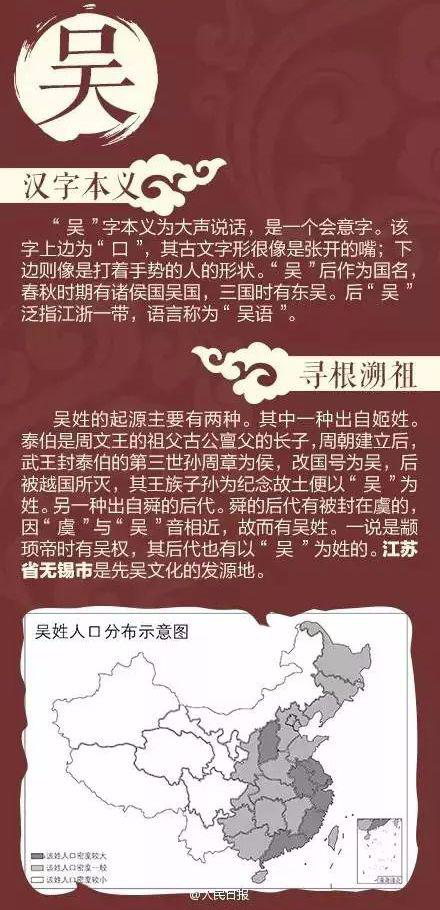 10、吳姓-占全中國漢族人口的 2.05%=24,600,000。