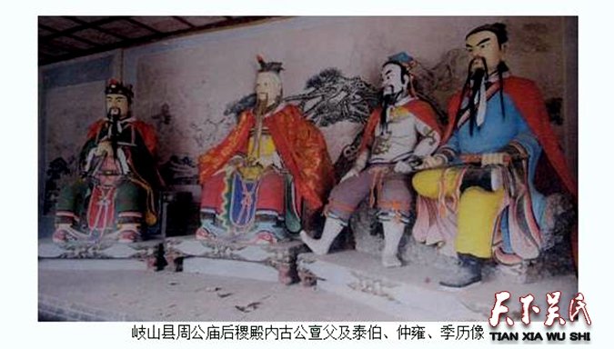 沒過幾年,公亶父在泰伯三兄弟得力輔佐下,把岐山周塬建設(shè)得更加富強(qiáng)。公亶父在岐山建立了周王朝,統(tǒng)領(lǐng)了中原許多部落,世人尊他為周太王。泰伯在岐山的時(shí)期里,不但帶領(lǐng)兄弟百姓為父親分憂解難,也潛心系統(tǒng)的學(xué)習(xí),思想觀、道德觀也都是在那個(gè)時(shí)期形成的,并且熟練掌握了天文、地理、農(nóng)業(yè)農(nóng)耕文化與耕作技術(shù)。