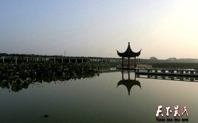 泰伯登上土墩環(huán)視周圍,只見此地水域廣闊,河溝縱橫,水網(wǎng)密布。爾后,又在玉祁當(dāng)?shù)睾藥ьI(lǐng)下,考察了西龍?zhí)?、荷花灘、五龍涇、蘆花蕩、龍尖嘴等地,感到這地方不比梅里差,甚至在水系方面勝過梅里地區(qū)。泰伯與玉祁當(dāng)?shù)厝苏f :“我建議你們擇水而居,與水親和,做到人水和諧,那該多好啊! " 經(jīng)過認(rèn)真分析、考慮和研究,泰伯組織動員玉祁湖民百姓不但是要抓好水產(chǎn)更要把養(yǎng)殖業(yè)搞起來,還要搞好農(nóng)業(yè)與桑蠶紡織業(yè),豐富老百姓的收入和生活。并認(rèn)真規(guī)劃了一片籃圖,在大墩東北邊的蘆花蕩圍湖造田,播種水稻,解決吃飯的大問題。在大墩西北的西龍?zhí)?,養(yǎng)殖經(jīng)濟(jì)效益好的烏背鯽魚、鮮味的龍?zhí)缎?。在大墩北?cè)的荷花蕩,種植蓮藕。此后幾年,玉祁地區(qū),農(nóng)牧水漁副業(yè)多邊發(fā)展,各行各業(yè)欣欣向榮,人民生活蒸蒸日上,社會繁榮,百姓安樂,一派豐衣足食、幸福安康的社會景象。