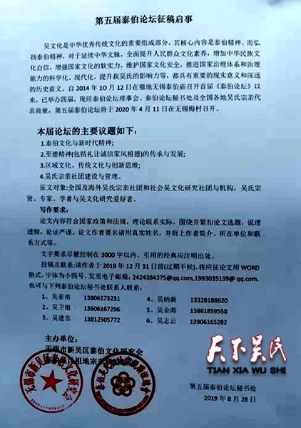 征文對象:全國及海外吳氏宗親社團和社會吳文化研究社團與機構,吳氏宗賢、專家、學者與吳文化研究愛好者。