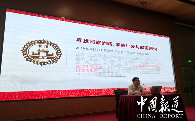 中國報道訊(吳蜀豐報道)9月28日,一個很特別的日子。這一天,是重慶圖書館國慶70周年放假之前,九月份最后一堂面對社會的開放式公益講座,也是中華民族歷史上一位令人尊崇的人物,儒家學派創(chuàng)始人至圣先師孔子誕辰2570周年的生日。作為直轄市文化宣傳系統(tǒng)高地的重慶圖書館在百忙之中作了一個特別策劃,邀請姓氏文化研究學者蔣瀧峰先生作為此次重慶圖書館講座特邀嘉賓,作題為《尋找回家的路.孝慈仁愛與家國同構(gòu)》專場演講。早在今年年初,重慶圖書館公益講座負責人陳昱竹女士就與蔣瀧峰先生多次溝通,選定講座題目,確定本次講座的主題及內(nèi)容。數(shù)周以前,又一再叮囑,盡職盡責。