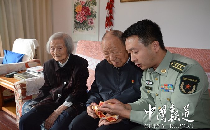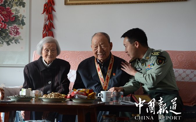 這次收到紀(jì)念章時(shí),想到當(dāng)初新婚三天就參軍,想到妻子那時(shí)的孤單背影,張書聲老人有些內(nèi)疚,他轉(zhuǎn)身緊握著老伴的手,感觸地說道,“這枚紀(jì)念章有我的一半,也有你的一半。”老伴盯著他,良久,哽咽著說,相守才是最真實(shí)的幸福。