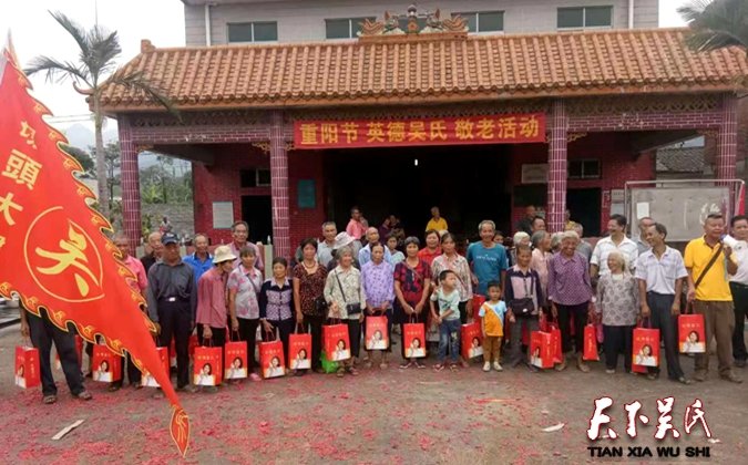 在濃濃歡樂(lè)的節(jié)日里,廣東英德吳氏景頭村迎來(lái)了第五個(gè)敬老的重陽(yáng)節(jié),英德是吳姓的大市(縣級(jí)市)有四十六枝系的吳氏宗親,吳氏人口將近十萬(wàn),英德吳氏愛(ài)心團(tuán),今天派出吳祖記、吳文彬、吳桂初、吳德輪、吳基文、吳志彬、吳彩霞、吳國(guó)偉等八位代表,參加第二次這這個(gè)村的重陽(yáng)節(jié)活動(dòng),我們通過(guò)一次次的聯(lián)誼和各種活動(dòng),讓泰伯公的在天之靈看到他的后裔這么多的宗親兄弟姐妹們,舉辦著各種活動(dòng)。