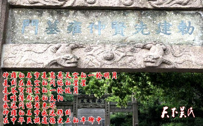 仲雍的名字是高懸天空的一輪明月,是刻在夜空的閃爍的星星,是蒼穹頂空的一輪皎月,是噴薄而出的太陽,永遠閃爍著光芒。仲雍的名字永遠鐫刻在中華民族道德史上的豐碑中。