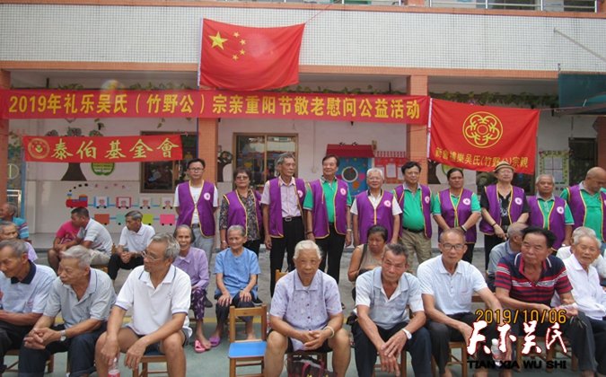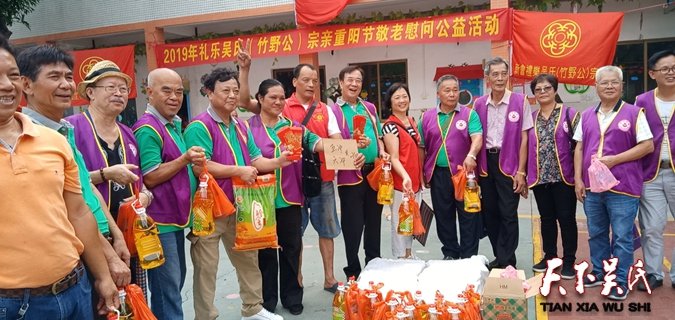 天下吳氏網(wǎng)(吳昌祿)歲歲重陽(yáng),今又重陽(yáng)。在“重陽(yáng)節(jié)”即將來臨之際,為營(yíng)造敬老愛老助老的良好氛圍,10月6日,江門禮樂吳氏(竹野公)聯(lián)誼會(huì)在江門禮樂開展“情滿重陽(yáng) 敬老愛老”活動(dòng),香港泰伯基金會(huì)當(dāng)屆會(huì)長(zhǎng)吳立輝,常務(wù)會(huì)長(zhǎng):吳炎逵、吳鵬、吳桂宣、吳錫義、吳建忠,常務(wù)副會(huì)長(zhǎng)兼秘書長(zhǎng)吳昌祿,名譽(yù)會(huì)長(zhǎng):梁柳娟、吳琴、吳光輝、吳鎮(zhèn)添、吳國(guó)標(biāo)、吳長(zhǎng)根,會(huì)員吳俊廷,和來自江門、中山、深圳、惠州、珠海、廣州云浮等地100多名吳氏宗親志愿者一起參加了這次慰問活動(dòng)。