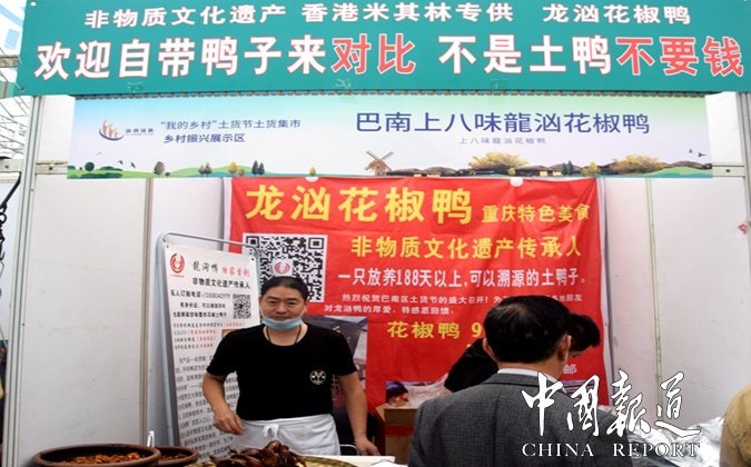 中國報(bào)道(吳蜀豐報(bào)道)在第三屆“渝創(chuàng)渝新”創(chuàng)業(yè)創(chuàng)新大賽創(chuàng)業(yè)扶貧暨鄉(xiāng)村振興主題賽及“渝創(chuàng)渝新”我的鄉(xiāng)村土貨節(jié)開幕現(xiàn)場,重慶非物質(zhì)文化遺產(chǎn)龍洶花椒鴨最引人注目,廣大食客排隊(duì)搶購人幾乎人滿為患。