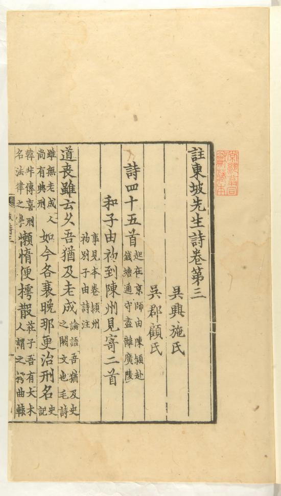 宋刻本《注東坡先生詩》 翁氏家族舊藏,現(xiàn)藏于上海圖書館