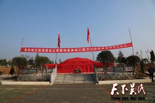 天下吳氏網(wǎng)訊(吳隆繁)---查閱紅安榮一公支1997年十修宗譜一至第十八卷,共三十二本(含民國(guó)38年第八屆修譜其中光山縣留存六本)吳萬七,字逸。公系泰伯(周文王姫昌的大伯父、吳國(guó)第一代君)、仲雍的八十五世孫。原籍江西撫州府臨川縣北鄉(xiāng)瓦硝墩人,公文韜武略,捷武闈,策名大司馬;元至正末官于楚,明太祖遣為黃州府椽守,(黃州守備);公年老猶喜武略,治軍嚴(yán)謹(jǐn),獎(jiǎng)懲分明,閑時(shí)還率軍農(nóng)耕,與民同甘共苦,深受軍民愛戴。卒于官,明太祖親敕武德將軍,誥封龍虎將軍,賜葬黃陂白龍山(今武漢市黃陂區(qū)王家河鎮(zhèn)長(zhǎng)堰管理區(qū)白龍寺村下灣北左首),建祠奉祀。妣饒氏授恭人,后謚封為太君,葬紅安縣楊貞橋(現(xiàn)高橋鎮(zhèn)岳家崗村象鼻嘴灣)。