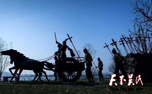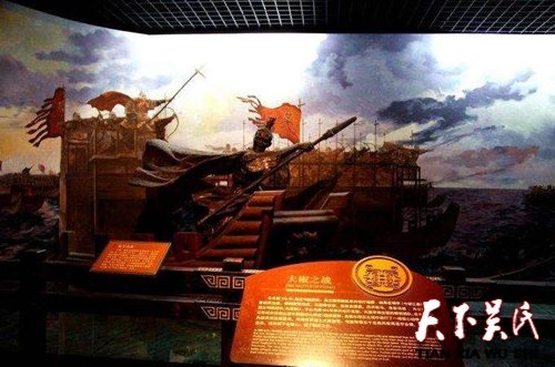 吳王夫差之國(guó)運(yùn)縱橫經(jīng)過幾年奮發(fā)圖強(qiáng),吳國(guó)穩(wěn)固了國(guó)基并且有了一定的實(shí)力。越王勾踐惶惶不可終日,決定對(duì)吳國(guó)先下手為強(qiáng)。公元前494年春天,勾踐調(diào)三萬精兵從水路進(jìn)攻吳國(guó),吳王夫差命伍子胥為主將,率軍隊(duì)在夫椒迎戰(zhàn),即今天的太湖馬山、洞湖山一帶。開戰(zhàn)當(dāng)天,夫差頭晚上一晚未眠,腦子中滿是三年前的故事,父親闔閭在與越國(guó)軍隊(duì)激戰(zhàn)的場(chǎng)面歷歷在目,猶如昨天發(fā)生的事一樣一直塞滿腦海,三年來一直是揮之不去的痛。父親闔閭臨終前的那種不舍、那種英雄壯志未酬的遺憾,那種對(duì)越國(guó)的仇恨,那滿含期待的殷殷囑咐,家國(guó)情仇在1095天的每時(shí)每刻貫穿在胸懷,一直激勵(lì)自己。天還未明,夫差即起床,穿戴披甲,早早親臨前線,時(shí)辰一到,站在大鼓前,一捶下去,鼓聲震天,由于激奮、激動(dòng),夫差一心想打敗越國(guó),俘虜勾踐,以報(bào)父仇,以雪國(guó)恥,豪情之下用力過于勇猛以至于把戰(zhàn)鼓擂破,鼓聲震得山谷轟鳴,猶如天鼓激蕩,響徹七十二峰,蕩濁太湖波濤洶涌。越軍被這震天響聲嚇得膽戰(zhàn)心驚,暈頭轉(zhuǎn)向,軍心大亂。吳軍在吳王夫差帶領(lǐng)下,號(hào)召將士為先王闔閭報(bào)仇,奮勇向前,士氣大振,同仇敵愾,一舉擊潰越國(guó)軍隊(duì),一路乘勝追擊,越軍潰不成軍,望風(fēng)而逃,夫差率領(lǐng)吳國(guó)軍隊(duì)勢(shì)如破竹,一路攻城掠地,越國(guó)大部分城池被拿下,最后占領(lǐng)了越國(guó)首都會(huì)稽城(今浙江紹興),包圍越國(guó)首都會(huì)稽山,迫使越國(guó)臣服于吳國(guó),這就是歷史上著名的夫椒之戰(zhàn)。