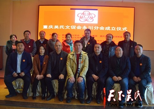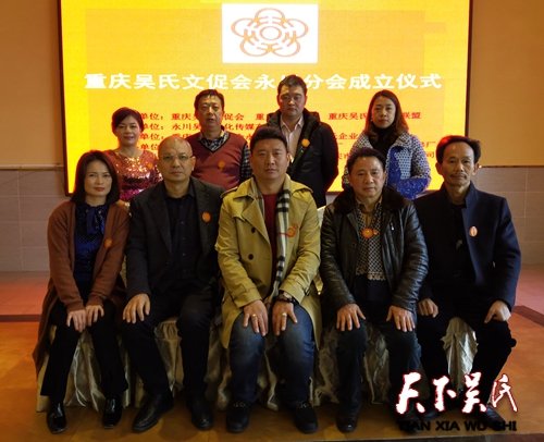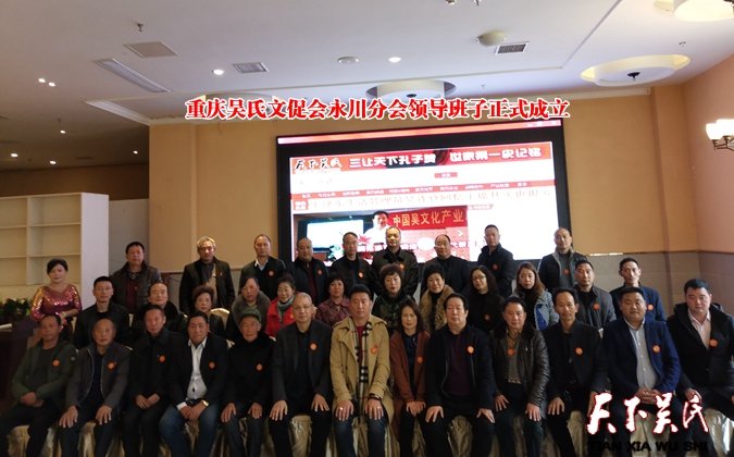 由重慶吳氏文化發(fā)展促進會黨支部書記兼監(jiān)事長吳曉非代理任重慶吳氏文促會永川分會會長,吳志國任重慶吳氏文促會永川分會執(zhí)行會長,吳學海、吳修剛、吳長清、吳清賢任名譽會長,吳志奇、吳清倫、吳修煉、吳平國、吳德鵬、吳君鳳任分副會長,吳清倫任秘書長;吳平志、吳至善、吳小紅、吳至春、吳明鳳任副秘書長。