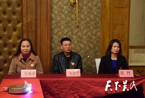 天下吳氏網(wǎng)訊(吳蜀豐)今天是雙喜臨門的日子,重慶吳氏文化發(fā)展促進(jìn)會(huì)梁平分會(huì)12月8日在梁平區(qū)名豪酒店正式成立,同時(shí)也是重慶吳氏文化發(fā)展促進(jìn)會(huì)會(huì)長(zhǎng)吳世平令尊大人的壽辰,“本來父親向來低調(diào),不擾民、不驚動(dòng)三朋四友和族親,僅是趕巧而已,”吳世平如是解釋道。