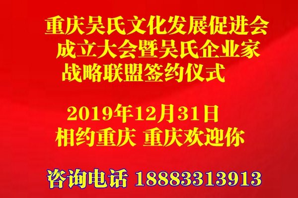 天下吳氏網(wǎng)訊(渝吳會)12月15日,重慶吳氏文化發(fā)展促進(jìn)會再次迎來雙喜臨門的日子,重慶吳氏文化發(fā)展促進(jìn)會巴南分會和三峽庫區(qū)萬州分會群團(tuán)聚喜相逄的好日子。