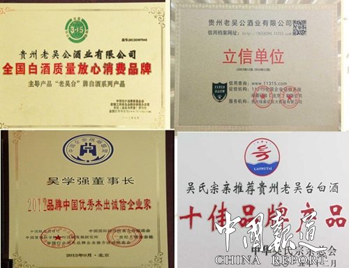 滄海桑田,轉(zhuǎn)眼過(guò)去了很多年,當(dāng)年的吳公老兩口的后人已經(jīng)遍布赤水河流域,他的子孫后代在全國(guó)和世界各地從事著各種行業(yè),但無(wú)論怎樣,他們忘不了家鄉(xiāng)的美酒,于是,部分吳公后人再度傳承祖業(yè),釀酒手藝傳承從未中斷;隨著歷史的變遷,社會(huì)的發(fā)展,科技的進(jìn)步,伴隨著茅臺(tái)鎮(zhèn)千年古法釀酒技藝的日臻完善,如今,吳公后人-清華學(xué)子學(xué)強(qiáng),通過(guò)不懈努力,將傳統(tǒng)釀酒事業(yè)與國(guó)學(xué)文化精髓有機(jī)融合,另辟蹊徑,賦予了美酒佳釀前所未有的生命力;經(jīng)中華人民共和國(guó)國(guó)家工商行政管理總局商標(biāo)局核準(zhǔn),吳氏美酒產(chǎn)品正式注冊(cè)命名為----“老吳臺(tái)”合法商標(biāo),吳氏美酒再次煥發(fā)出創(chuàng)新的活力,綻放出強(qiáng)勁有力的時(shí)代光彩!