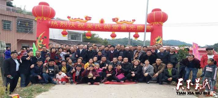英德吳氏四十六個分枝通過了各村理事的努力把英德吳氏總祠已經臨時修建好了,在往后的英德吳氏將會更加團結一心,共同把英德十萬吳氏發(fā)揚光大,為壯大吳氏我們有決心和信心,不忘初心牢記使命永遠跟黨走的口號,把吳氏的事業(yè)做強做大為吳氏的明天我們永遠都在路上創(chuàng)造更大的輝煌。