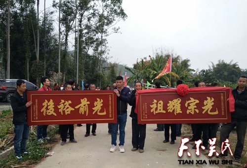 今天祠堂慶典來自廣東各地的吳氏有湛江茂名佛山廣州深圳清遠還有鄰縣韶關一千多人前來祝賀。