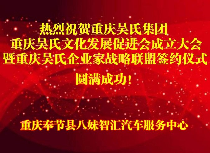 重慶吳氏文促會(huì)成立協(xié)辦單位八妹智匯汽車服務(wù)中心