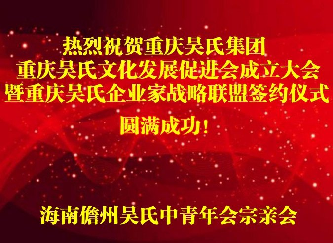 預(yù)祝重慶吳氏文化促進(jìn)會(huì)成立慶典圓滿成功!