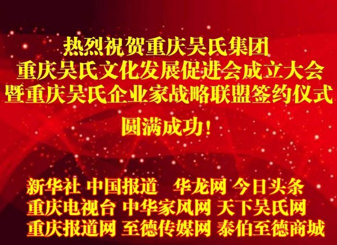 預祝重慶吳氏文化促進會成立慶典圓滿成功!