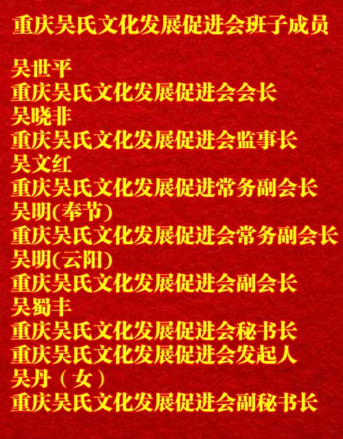 重慶吳氏文化發(fā)展促進(jìn)會班子成員