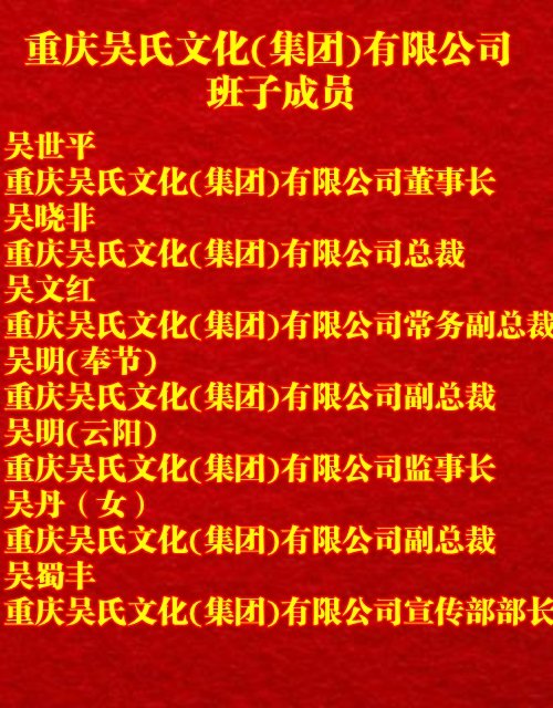 重慶吳氏文化(集團(tuán))有限公司班子成員