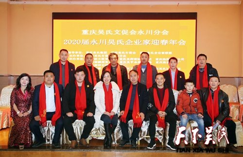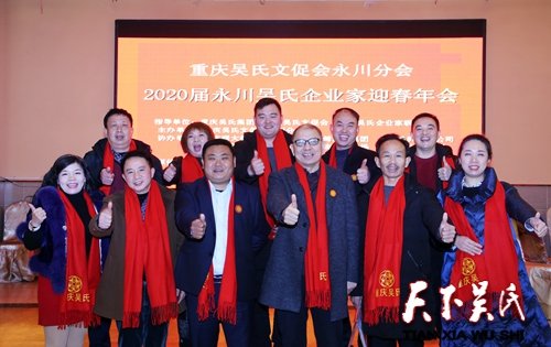 重慶吳氏文化集團(tuán)總裁、重慶吳氏文促會監(jiān)事長兼永川分會會長、重慶吳氏企業(yè)家聯(lián)盟常務(wù)理事長吳曉非,重慶吳氏文促會永川分會名譽(yù)會長吳成江,重慶吳氏文促會副會長、永川分會執(zhí)行會長吳志國宗親,永川分會副會長兼秘書長吳清倫,永川分會副會長吳德鵬、吳君鳳、吳志奇、吳修煉、吳平國,副秘書長吳平志、吳至善、吳小紅、吳至春、吳明鳳及永川吳氏企業(yè)家代表,吳家壩吳氏宗親代表,吳麻口吳氏宗親代表,龍石氹?yún)鞘献谟H代表,吉安鎮(zhèn)吳氏宗親代表,張家村吳氏宗親代表,來蘇鎮(zhèn)吳氏宗親代表參加迎春年會。