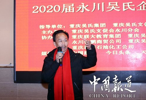 天下吳氏網(wǎng)訊(吳蜀豐)由重慶吳氏文化發(fā)展促進(jìn)會永川分會主辦,重慶聯(lián)大教育集團(tuán)、重慶吳師傅涂料集團(tuán)、重慶浩洲物資公司、重慶吳平志養(yǎng)蜂農(nóng)場、永川德鵬商貿(mào)公司、重慶群祥石油化工公司、重慶逸志電器廠等單位協(xié)辦的“2020屆永川吳氏企業(yè)家迎春年會”1月16日在重慶永川商貿(mào)城舉行。