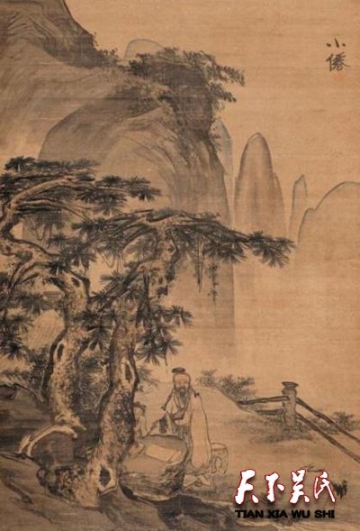 吳偉是浙派又一個(gè)最重要的代表,擅長(zhǎng)山水人物。他的畫(huà)簡(jiǎn)括放縱,喜作大幅,氣勢(shì)雄偉,筆墨奔放,“片石一樹(shù),更在文迸上”,代表作有《灞橋風(fēng)雪圖》《溪山漁艇圖》《江山萬(wàn)里圖》等,體現(xiàn)了宋元以來(lái)水墨山水畫(huà)灼新發(fā)展。他的宗教人物畫(huà)受吳道子的影響較大,即有自己的特色,多為水墨寫(xiě)意,縱墨不甚在意,奇逸瀟灑動(dòng)人,以現(xiàn)存《北海真人》釆芝仙人》《仙蹤侶鶴》等宗教卷軸畫(huà)中,可以看見(jiàn)其畫(huà)中人物器宇軒昂,神情瀟灑,給人面目一新之視覺(jué)。他的普通人物畫(huà)也極為出色,繪《武陵春圖》以淡雅的筆法,成功塑造了一位忠貞愛(ài)情平民婦女的形象,是繪畫(huà)史上難得的佳作。