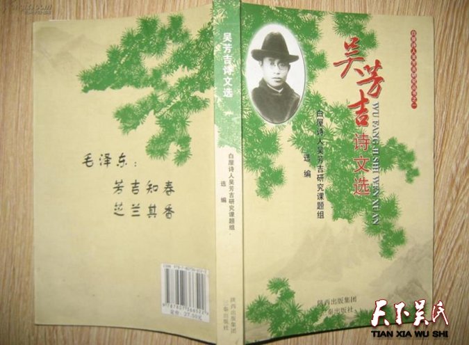 白屋詩人吳芳吉1896年生,號碧柳,自署白屋吳生,人稱白屋詩人。籍貫四川江津縣德感壩人,父親由于在重慶經(jīng)商全家居住重慶。他7歲時在重慶大梁子左營衙門小學(xué)讀書。不久父親經(jīng)商破產(chǎn)涉及訴訟官司被判入獄,家境困囧,不得已返回老家江津。后在白沙聚奎書院讀書。不久在父親公司會計幫助下,一個人到重慶為父親申冤。重慶主管案子的縣官看見他小小年紀(jì),感其孝心,念其無畏,憐其心誠,將他父親釋放回家,家人方得團聚。