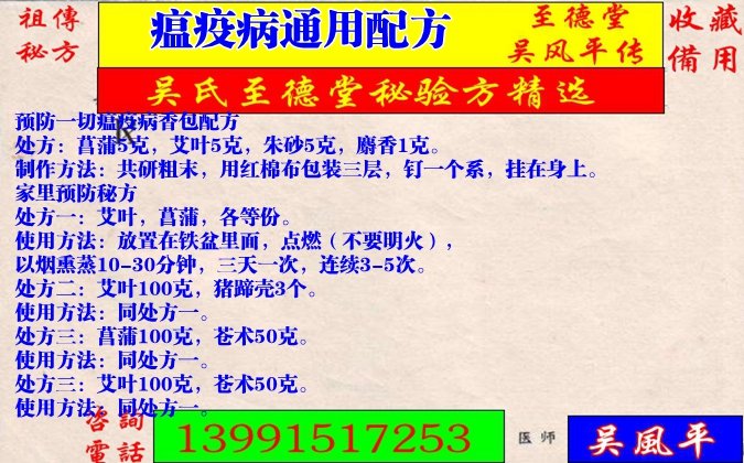 吳風(fēng)平教授認(rèn)為健康比什么都重要故而將祖?zhèn)髅胤焦_分享給大家其宗旨是讓每我們健康快樂(lè)生活。是吳家的幸事,更是大家的好事。但中醫(yī)秘方因人因病因個(gè)體而辯證施治,藥方因季節(jié)、地域差異等特征。所以使用處方前務(wù)必電話咨詢醫(yī)師相關(guān)事宜以達(dá)到更好療效。