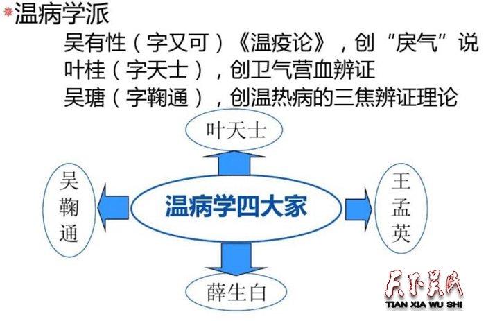 他曾在北京檢核《四庫(kù)全書》,得見其中收載了吳又可的《溫疫論》,深感其論述宏闊有力,發(fā)前人之所未發(fā),極有創(chuàng)見,又合于實(shí)情,便仔細(xì)研究,受到了很大的啟發(fā)。他對(duì)葉天士更是推崇,但認(rèn)為葉氏的理論“多南方證,又立論甚簡(jiǎn),但有醫(yī)案散見于雜證之中,人多忽之而不深究。”于是他在繼承參古博今,結(jié)合臨證經(jīng)驗(yàn),撰寫了《溫病條辨》5卷,對(duì)溫?zé)岵W(xué)說做了進(jìn)一步的發(fā)揮他認(rèn)為溫病有9種,吳又可所說的溫疫是其中最具傳染性的一種,除此之外,另外還有其他八種溫病,可以從季節(jié)及疾病表現(xiàn)上加以區(qū)分,這是對(duì)于溫病很完整的一種分類方法。書中創(chuàng)立了“三焦辨證”的學(xué)說,這是發(fā)展了張仲景的六經(jīng)辨證,創(chuàng)立了衛(wèi)氣營(yíng)血辨證方法之后,在中醫(yī)理論和辨證方法上的又一創(chuàng)舉。“三焦辨證”法:就是將人體“橫向”地分為上、中、下三焦。上焦以心肺為主,中焦以脾胃為主,下焦包括肝、腎、大小腸及膀胱。由此創(chuàng)立了一種新的人體臟腑歸類方法,此法十分適用于溫?zé)岵◇w系的辨證和治療,診斷明確,便于施治。而且確立了三焦的正常傳變方式是由上而下的“順傳”途徑,“溫病由口鼻而入,鼻氣通于肺,口氣通于胃,肺病逆?zhèn)鲃t為心包,上焦病不治,則傳中焦,胃與脾也;中焦病不治,則傳下焦。始上焦,終下焦。”因而,由傳變方式也就決定了治療原則:“治上焦如羽,非輕不舉;治中焦如衡,非降不安;治下焦如漚,非重不沉。”同時(shí),他對(duì)《傷寒論》的六經(jīng)辨證,同樣采取了積極采納的態(tài)度,認(rèn)為“傷寒六經(jīng)由表入里,由淺入深,須橫看;本節(jié)論三焦,由上及下,亦由淺入深,須豎看。”這些理論,雖然從立論方式和分析方法上有所不同,但實(shí)際上仍是對(duì)葉天士的衛(wèi)氣營(yíng)血辨證法的繼承,并對(duì)其進(jìn)行了很大的發(fā)展,尤其是在對(duì)疾病變化的認(rèn)識(shí)上,是可以權(quán)衡協(xié)調(diào)的,二者并無矛盾之處。同時(shí),三焦辨證法也完善了葉天士衛(wèi)氣營(yíng)血說的治療法則。葉氏的《溫?zé)嵴摗分袥]有收載足夠的方劑,而吳鞠通的另一重大貢獻(xiàn),就是在《溫病條辨》當(dāng)中,為后人留下了許多優(yōu)秀的實(shí)用方劑,象銀翹散、桑菊飲、藿香正氣散、清營(yíng)湯、清宮湯、犀角地黃湯等等,都是后世醫(yī)家極為常用的方劑,廣泛用于臨床。現(xiàn)在臨床上使用的方子,《溫病條辨》方占了十之八九。