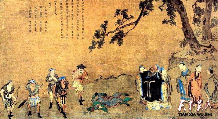 孔子眼淚汪汪地說(shuō):“我就好像麒麟啊!麒麟出世,因不遇明王而遭害;我生不逢時(shí),不遇明王,因而我的思想主張難以得到實(shí)行,而終于到了窮困的地步!”
