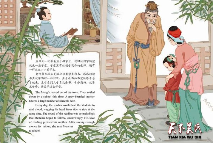 這一次,孟軻心里感到很震撼。他認真地思考了好長時間,終于恍然大悟,明白了道理,從此專心致志地讀起書來。由于他天資聰明,肯下功夫了,后來又專門跟著孔子的孫兒、大學問家子思學習,終于學有所成,成了與孔子齊名的儒家學說的重要代表人物。