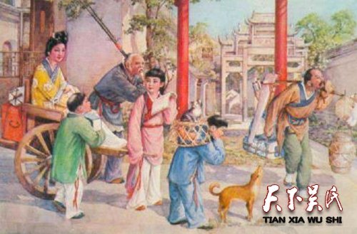 孟母一看不行,又第三次搬家了。這次的家,隔壁是一所學堂,有個胡子花白的老師教著一群大大小小的學生。老師每天搖頭晃腦地領著學生念書,那拖腔拖調的聲音就像唱歌。調皮的孟軻覺得有趣,也跟著搖頭晃腦地念了起來。孟母以為兒子喜歡念書了,高興得很,干脆拿了兩條干肉做學費,把孟軻送去上學??墒怯幸惶?,孟軻又逃學了。孟母知道后傷透了心。等孟軻玩夠了回來,孟母問他:“你最近書讀得怎么樣?”孟軻說:“還不錯。”孟母一聽,生氣極了,罵道:“你這不成器的東西,逃了學還有臉撒謊騙人!我一天到晚苦苦織布為了什么!”說著,揪著他的耳朵拖到織布機房,抄起一把雪亮的剪刀,“哧哧”地剪起來,把織機上將要織好的布全剪斷了。孟軻一見,嚇得愣住了,不明白母親為什么這樣做。正想弄個明白,只見孟母把剪刀一扔,厲聲說道:“你貪玩逃學不讀書,就像剪斷了的布一樣,織不成布;織不成布,就沒有衣服穿;不好好讀書,你就永遠成不了人才。”