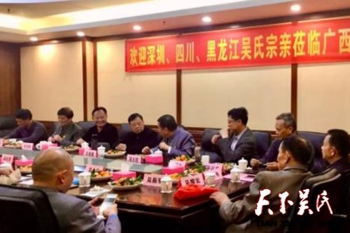 天下吳氏網(wǎng)訊(吳蜀豐)2020年1月1日至3日,四川、深圳、黑龍江吳氏宗親代表團(tuán)一行13人,在川吳會(huì)會(huì)長(zhǎng)吳天智、深吳會(huì)會(huì)長(zhǎng)吳長(zhǎng)陽(yáng)、吳軍久代表的帶領(lǐng)下,齊聚廣西梧州,開(kāi)展“二省一區(qū)(廣西壯族自治區(qū))一市(深圳)”吳氏宗親交流訪(fǎng)問(wèn)活動(dòng)。廣西吳氏聯(lián)誼會(huì)吳榮強(qiáng)率吳氏宗親代表熱情接待。