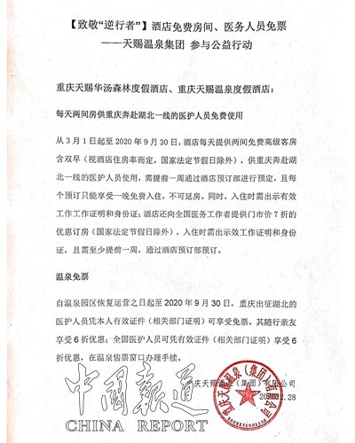 重慶天賜溫泉集團抗疫醫(yī)務(wù)人員住酒店免費