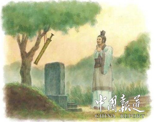 怎料世事無(wú)常,等到季札出使返回,又經(jīng)過(guò)徐國(guó)時(shí),徐君卻已經(jīng)過(guò)世了。他站在徐君墓前,內(nèi)心有說(shuō)不出的悲戚與感傷。他望著蒼涼的天空,把那把長(zhǎng)長(zhǎng)的劍,掛在了樹上,心中默默地禱念著:您雖然已經(jīng)走了,我內(nèi)心那曾有的許諾卻常在。希望您的在天之靈,在向著這棵樹遙遙而望之時(shí),還會(huì)記得我佩著這把長(zhǎng)長(zhǎng)的劍向你道別的那個(gè)時(shí)候。他默默地對(duì)著墓碑躬身而拜,然后返身離去。