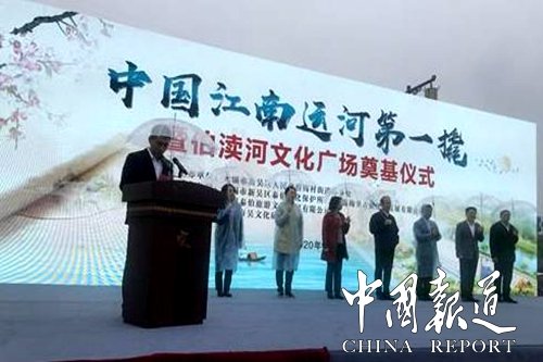 中國報(bào)道訊(通訊員吳建東吳樂一)2020年4月11日上午,梅村街道伯瀆河旁人聲鼎沸,廣場上站滿了人群,“中國江南運(yùn)河第一撬”伯瀆河文化廣場奠基儀式在伯瀆河旁盛大舉行。即使現(xiàn)場風(fēng)雨交加,也抵擋不住所有人對(duì)此次奠基儀式的期待。