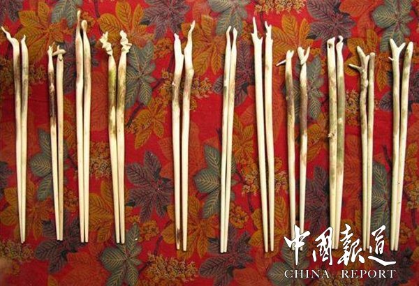 中國人習慣用筷子,而非洲、中東、印度尼西亞及印度次大陸等地區(qū)的人則用手指去抓取。中國目前發(fā)現(xiàn)的最早筷子是河南省安陽市殷墟出土的銅筷子?!俄n非子·喻老》言:“昔者紂為象箸,而箕子怖。”紂王為商朝末期的國君,可見3000多年前的中國就已經(jīng)出現(xiàn)象牙筷子。